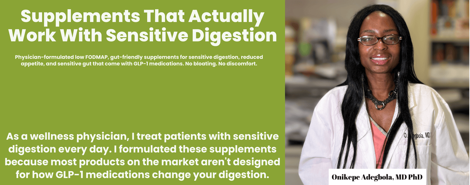 Standard supplements aren't designed for GLP-1 patients. Your stomach empties 30-50% slower. Food sits longer. Standard fiber causes more bloating, not less. Standard protein powders feel like a brick.