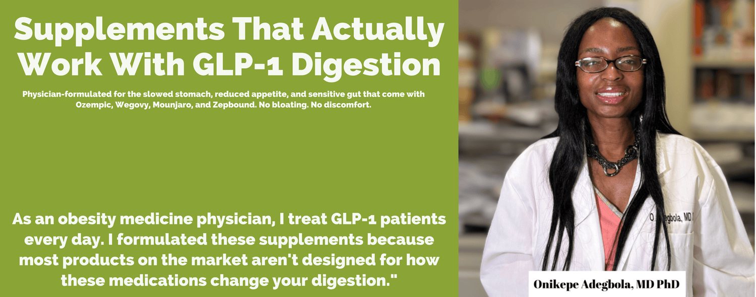 Standard supplements aren't designed for GLP-1 patients. Your stomach empties 30-50% slower. Food sits longer. Standard fiber causes more bloating, not less. Standard protein powders feel like a brick.